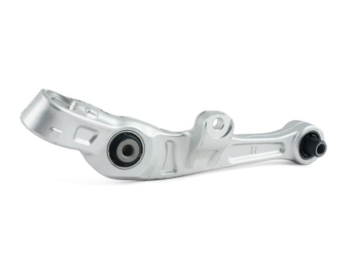 Hayaku Automotive offers premium replacement front lower control arms for the 2003-2008 Nissan 350Z at an affordable price. Lower control arm and shock bushings fail as your vehicle ages, resulting in excessive noise and vibration. These components are independently serviceable but require the old steel liner to be pressed out. Replacing the entire control arm is an affordable and time-saving solution when performance bushings are not desired, removing the need for a shop press. We have also found that, unlike most aftermarket OE-style control arms, these are machined to accept aftermarket control arm bushings. This means that if you wish to upgrade to performance bushings in the future, you will not need to source an original Nissan control arm!