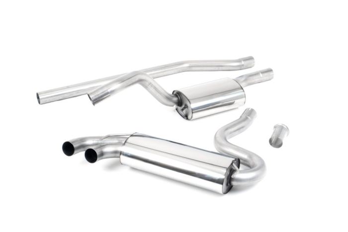Resonated (quieter). Titanium OEM-Style Tips. Requires 4 holes to be drilled into the boot floor to allow fitment of the new Milltek Sport exhaust hangers