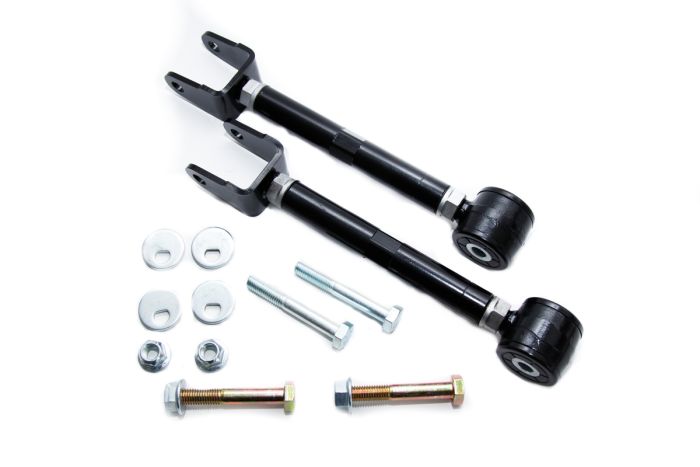 When you lower the vehicle, the toe and camber in the rear is drastically effected. We have developed Rear Camber/Toe kit to help alleviate this issue