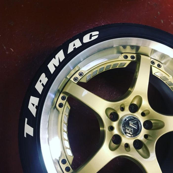 These are robust tire colored tire stickers that will hold up the force of a pressure washer.