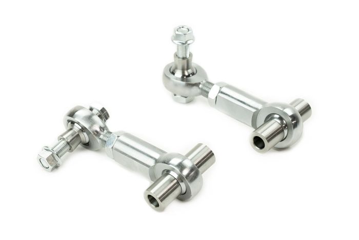Voodoo13 rear end links are designed, and engineered to handle the stiffest aftermarket anti roll bars. To prevent binding issues with aftermarket roll bar mounting locations, the end links includes high misalignment spacers to achieve a remarkable 65 degrees of misalignment. These end links are length adjustable to dial out pre-load in the sway bars due to uneven height or distribution of weight. Includes high strength grade 10.9 bolts and QA1’s nylon/PTFE injection molded race that keeps dirt and debris out.